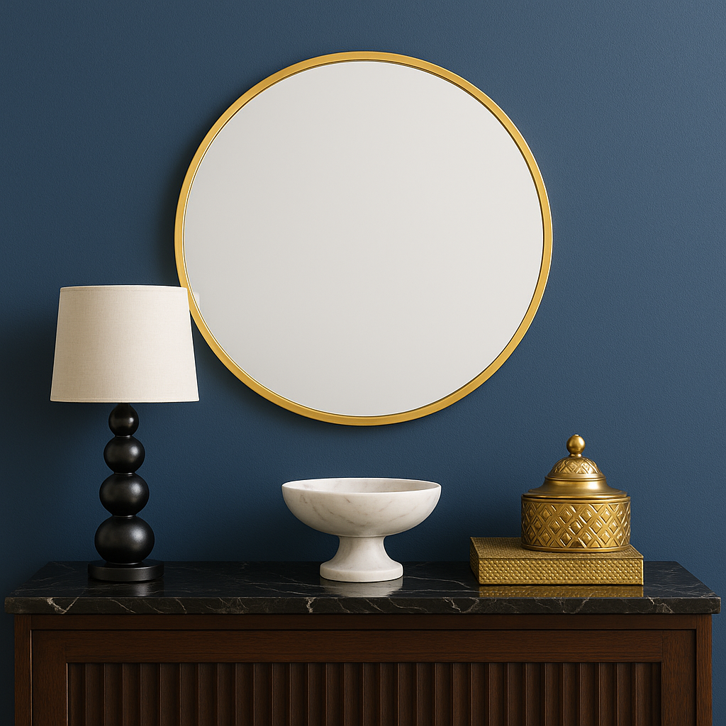 Use a soft microfiber cloth and a gentle glass cleaner. Avoid abrasive materials or ammonia-based products, especially on gold, black, or brushed finishes, to preserve the mirror’s shine and frame integrity.