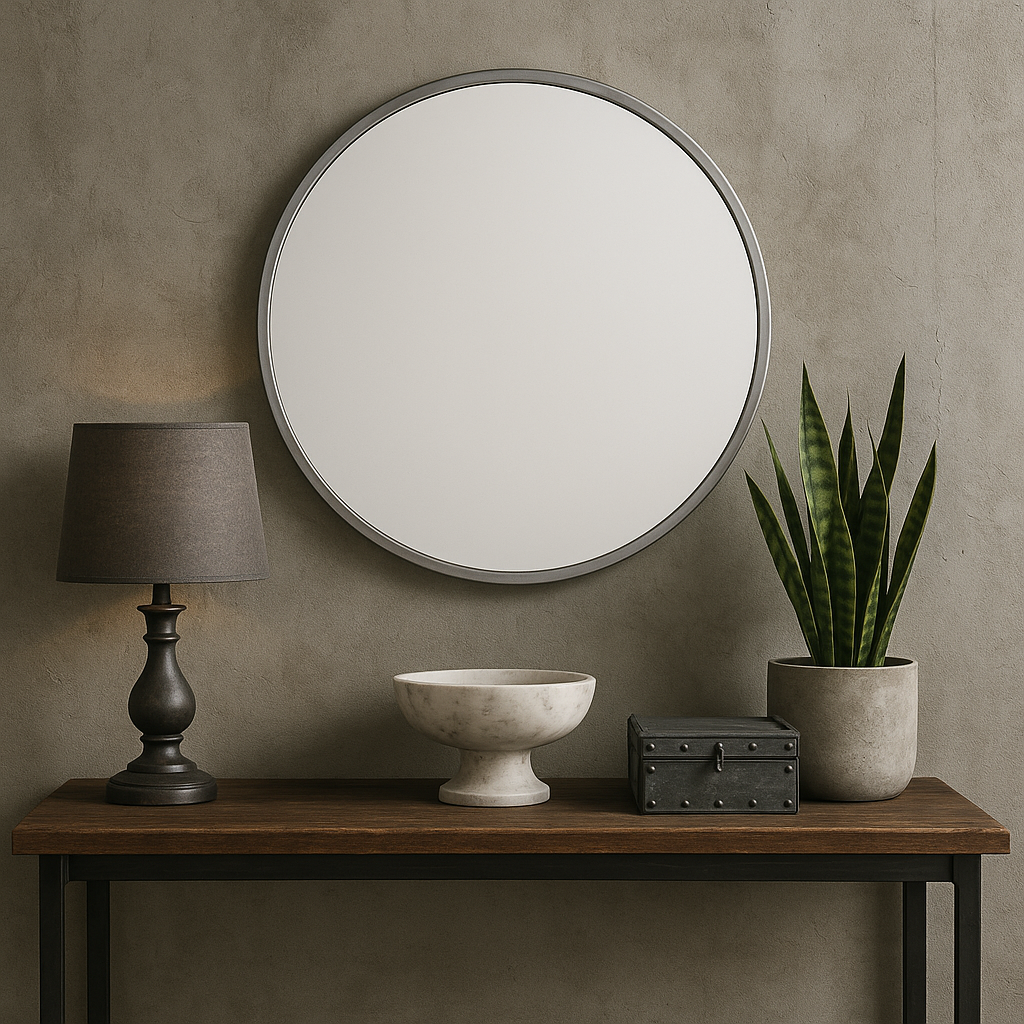 Elevate your space with the timeless elegance of our Round Mirror. Perfectly symmetrical and beautifully simple, this mirror adds a touch of sophistication to any room. Whether you place it in your living room, bedroom, or hallway, its classic shape enhances both modern and traditional décor. Crafted with high-quality glass and a sturdy frame, this round mirror from Tuscan Mirrors will become a focal point in your home, reflecting light and creating an illusion of space.